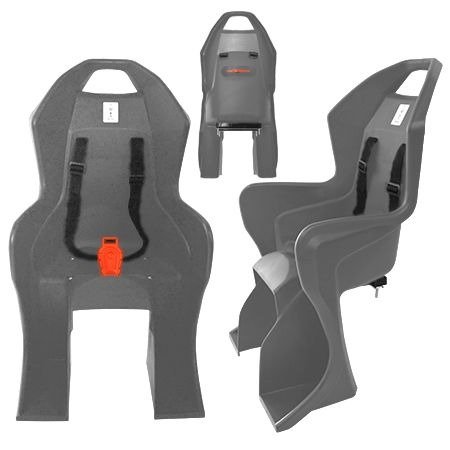 SILLA DE NIÑOS TRASERA PARA BICICLETAS COMPACTA MAX. 15KG. C/ REFRACTARIO TRASERO COLOR GRIS Y KIT DE INSTALACION