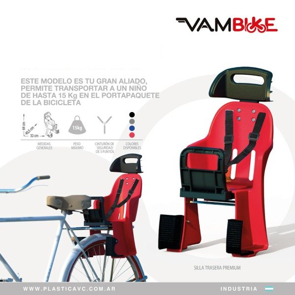SILLA DE NIÑOS TRASERA PARA BICICLETAS CON APOYA CABEZA/ PROTECTOR DE PIES/ APOYA MANOS/ OJO DE GATO TRASERO. COLOR NEGRA